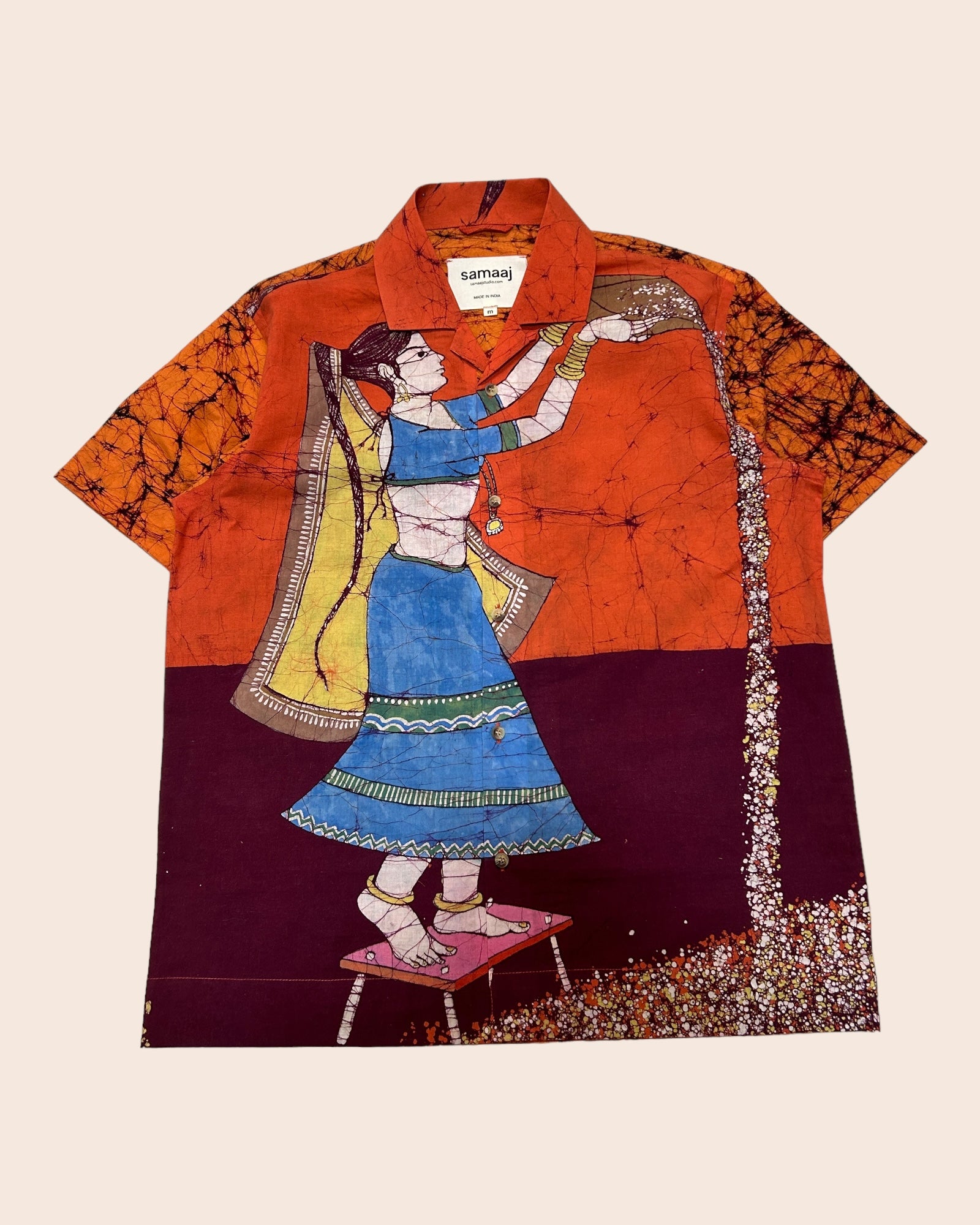 The fabric is then dyed, and the areas that have been waxed will not be penetrable by the dye. The process can be repeated many times to get a multicoloured result. Any irregularities or residual wax in the garments portrays the uniqueness of this handmade product.