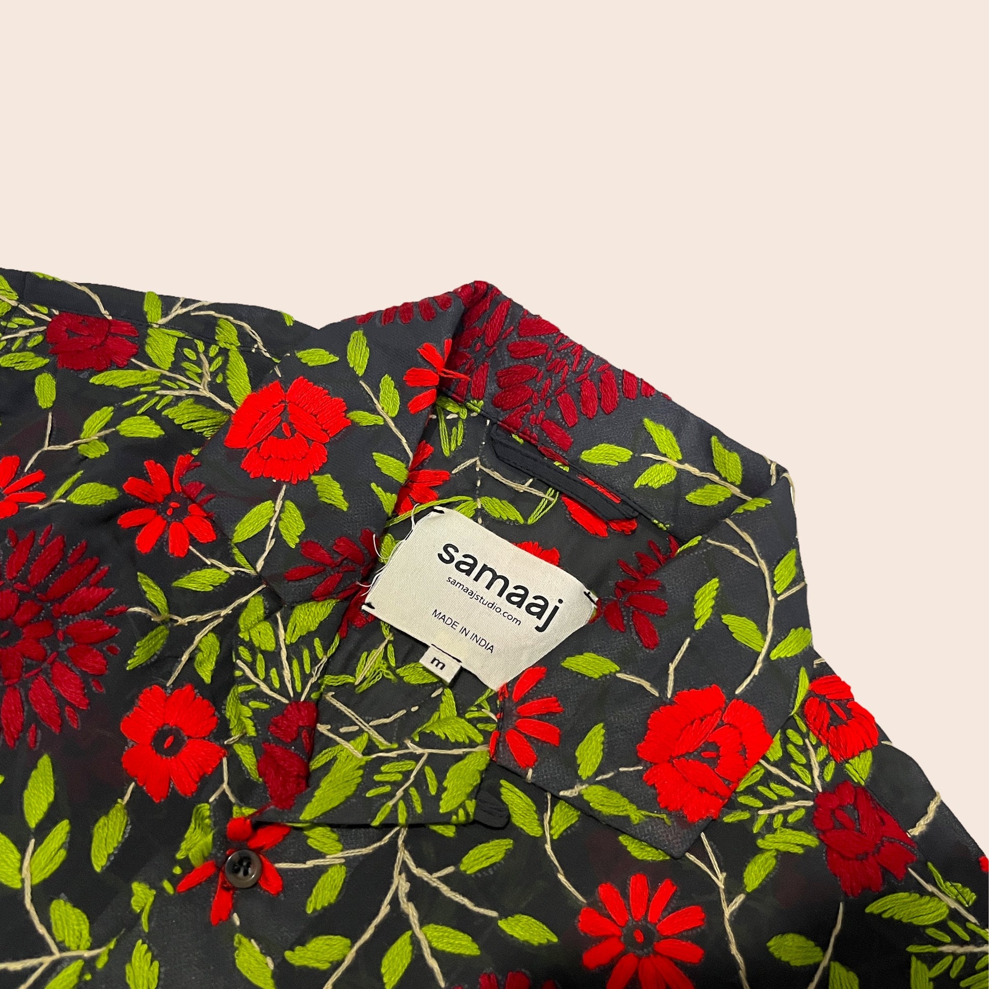 - Hand embroidered