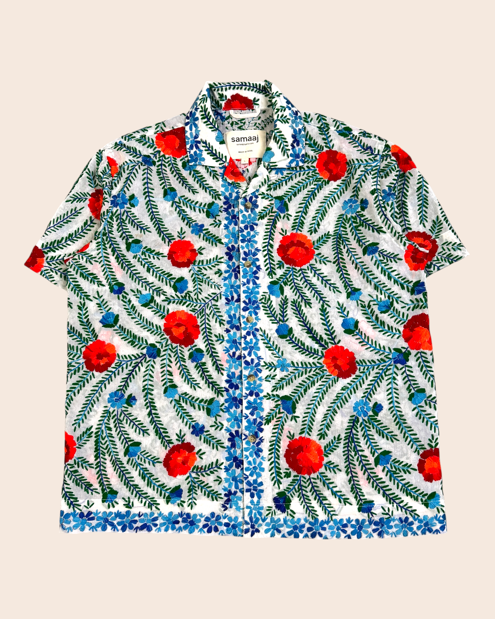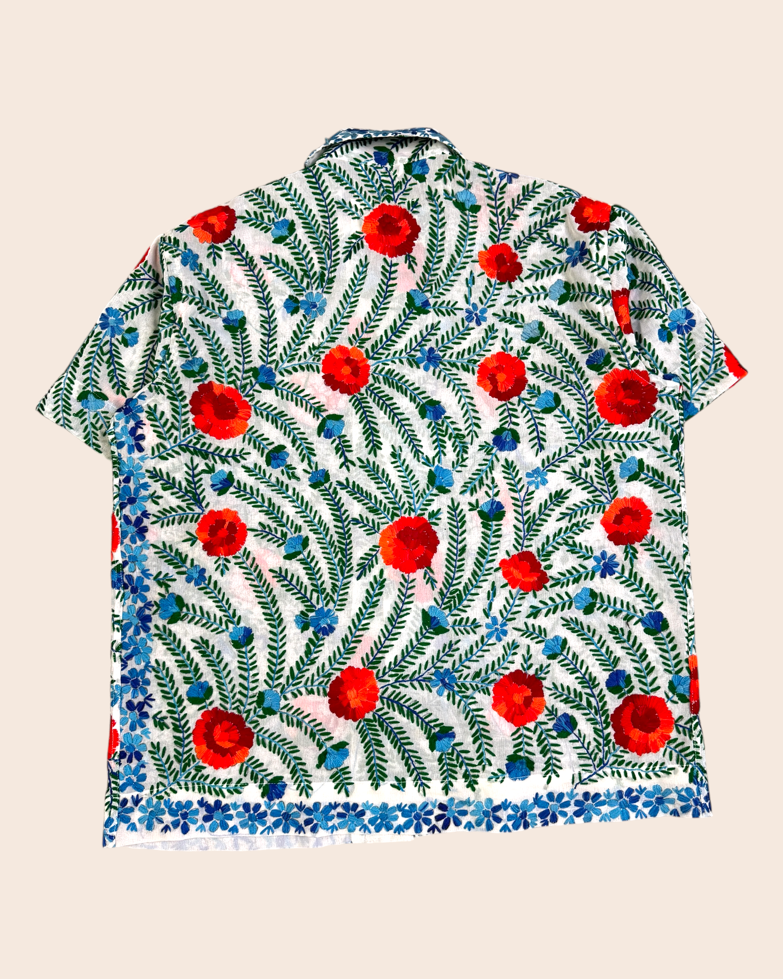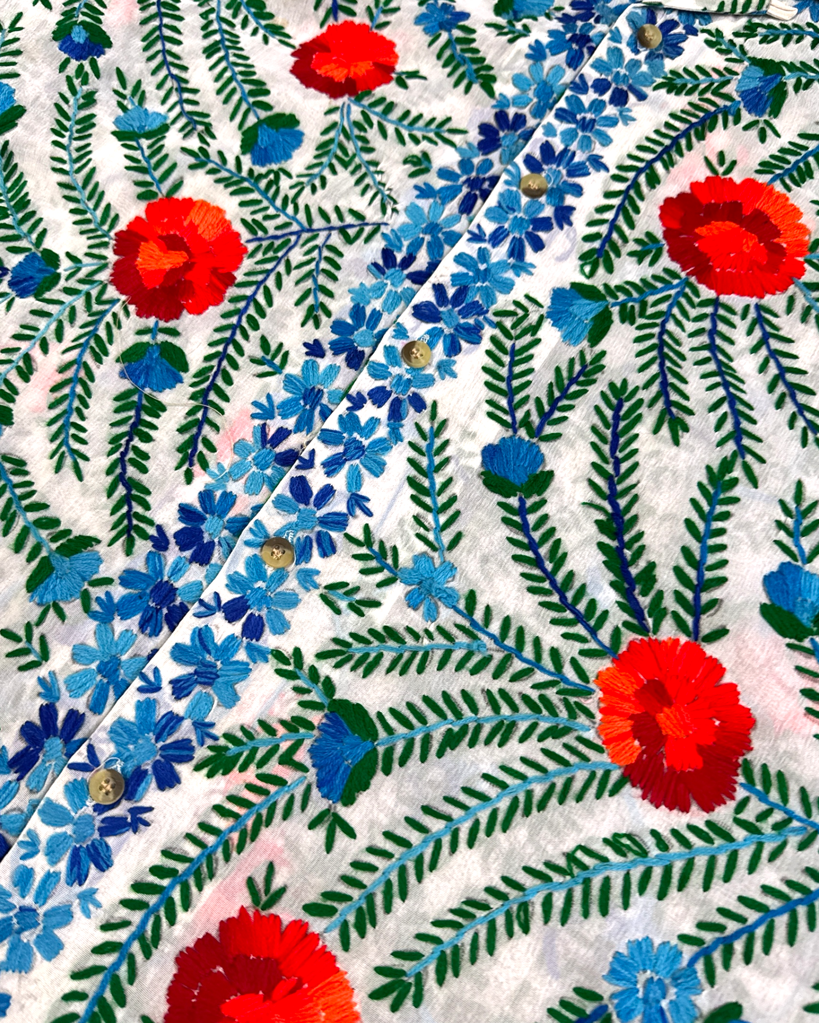 - Hand embroidered