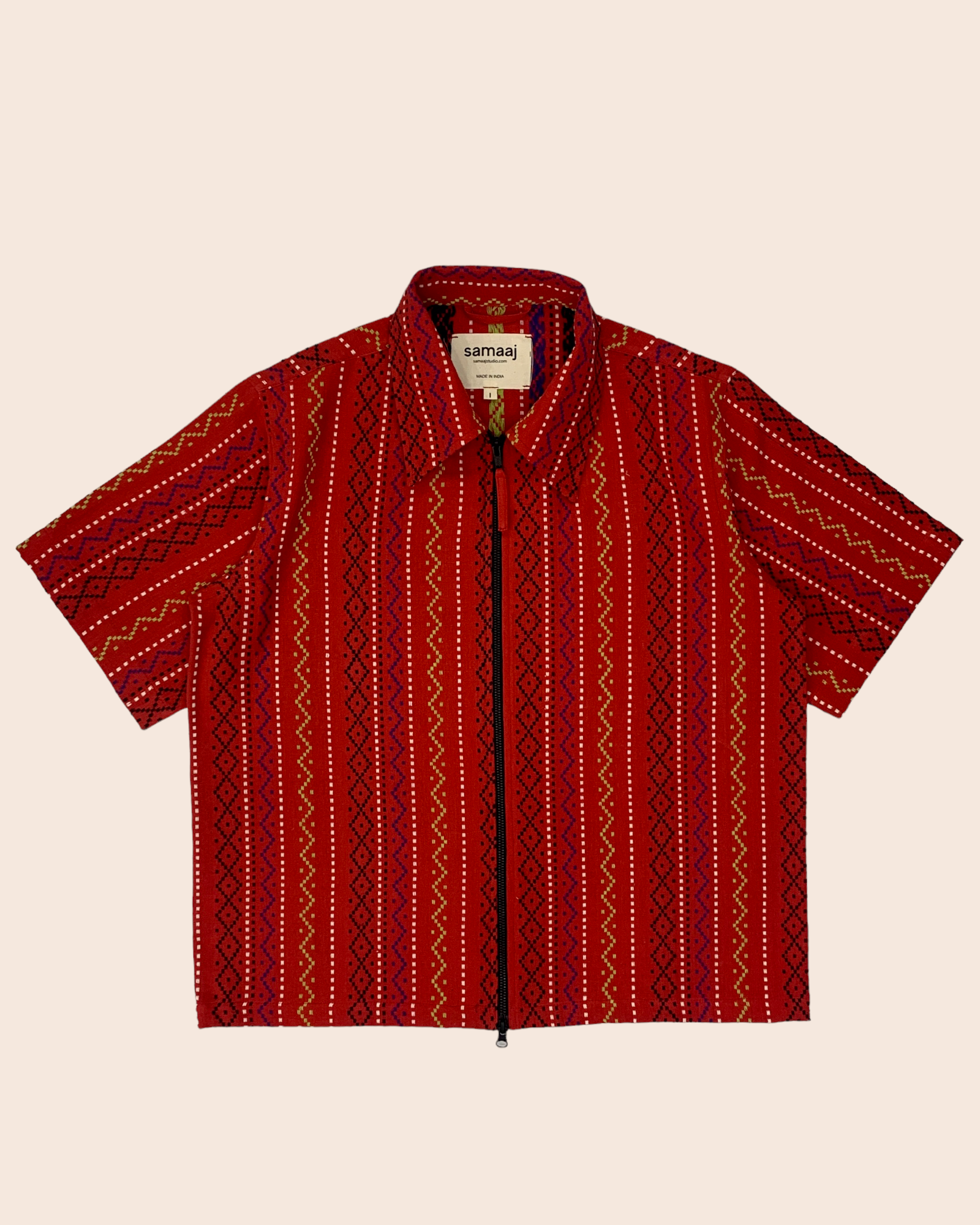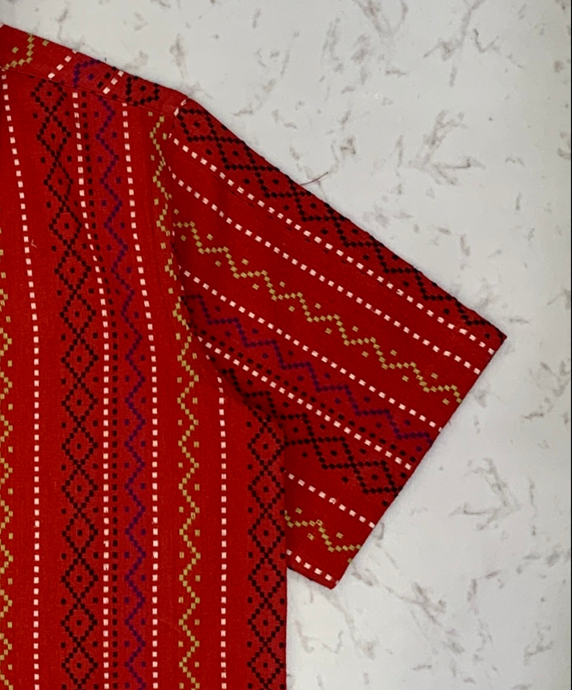Vintage red shirt made out of 1990s vintage deadstock bedsheet. This bedsheet is handwoven by the weavers of Bhagalpur, Bihar.