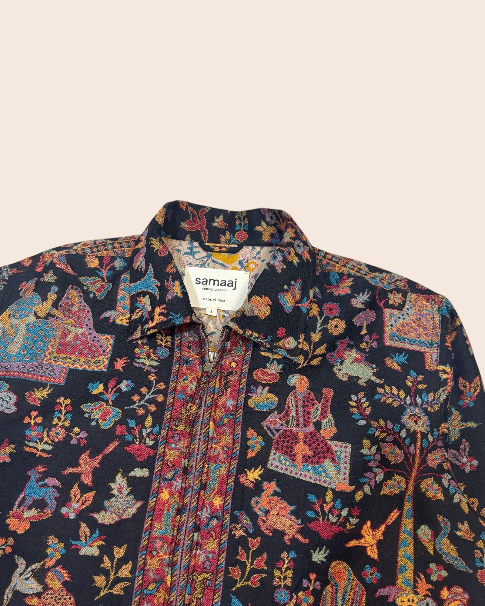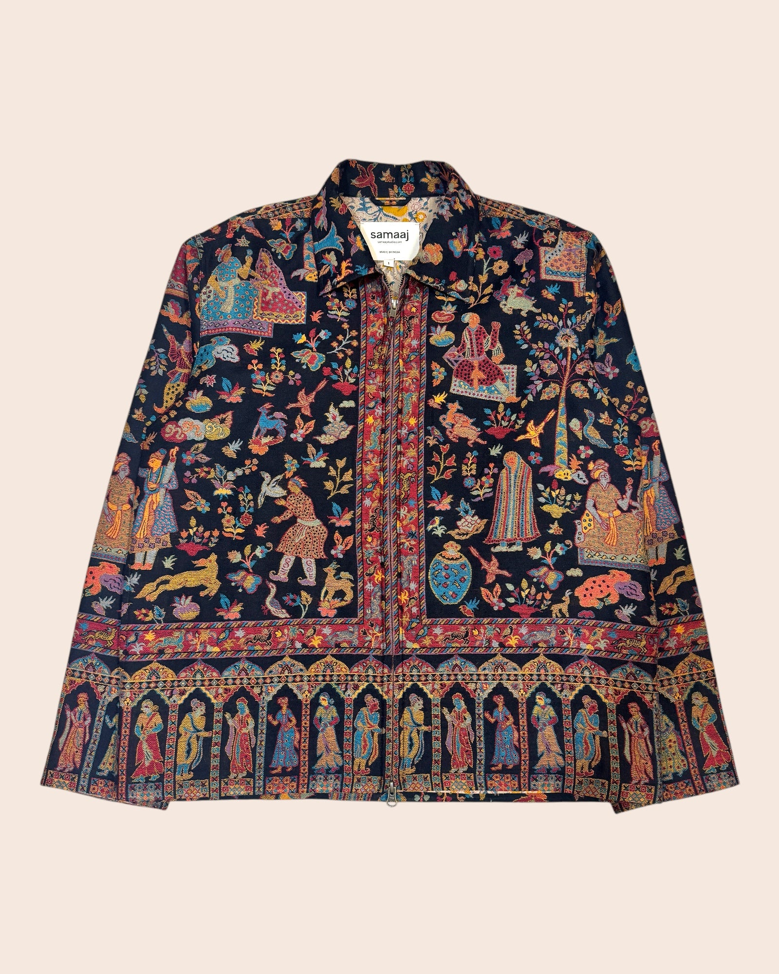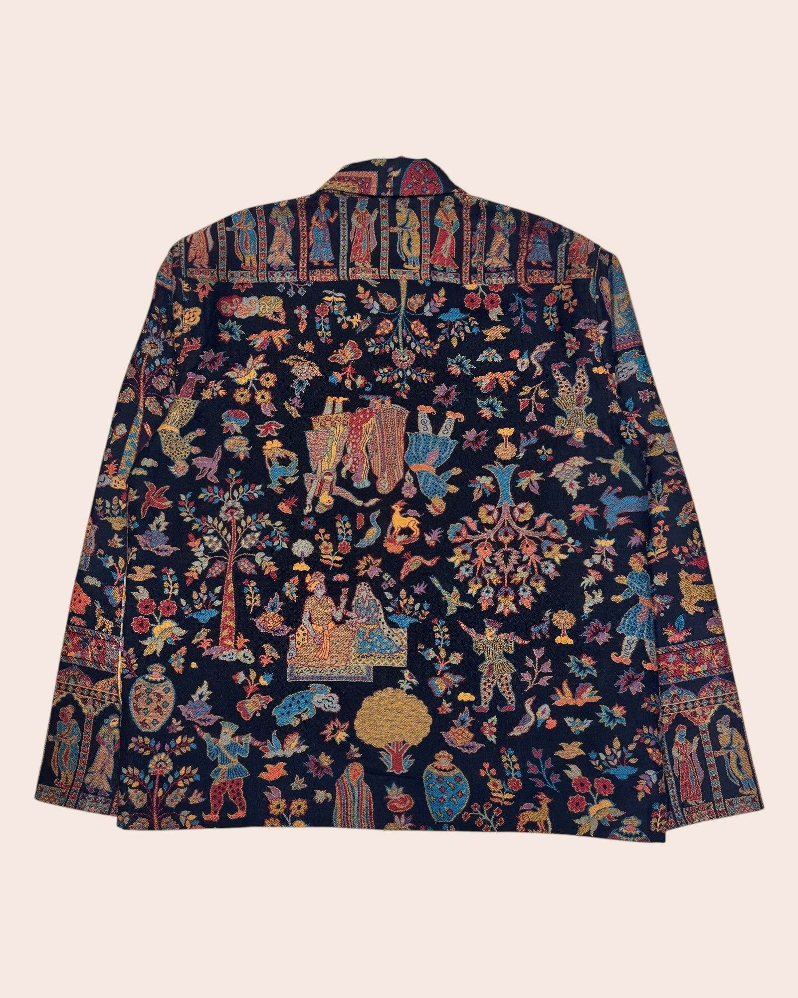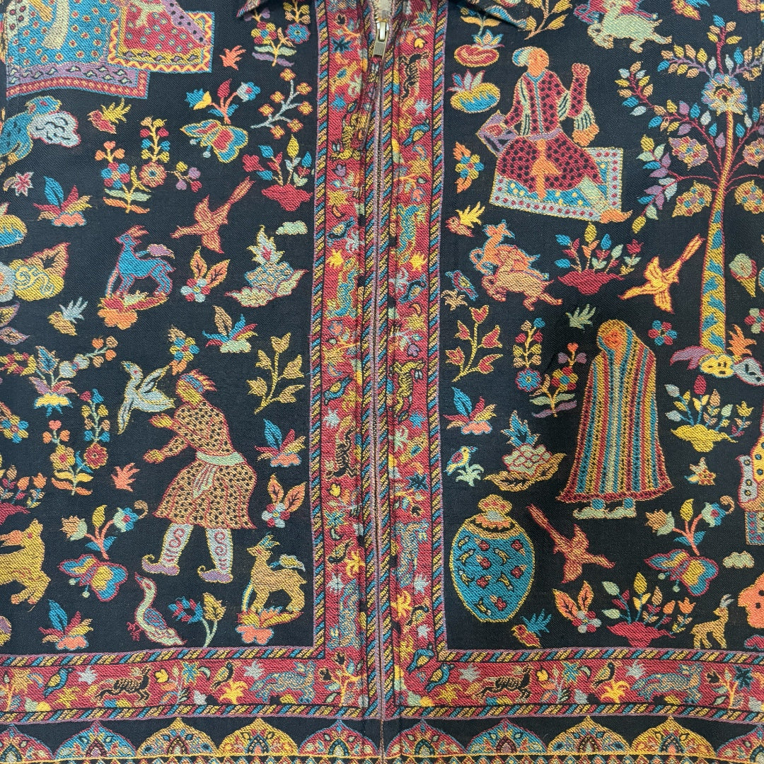 Pashmina hand woven jacket made from handwoven vintage pashmina wool shawl. Woven with the kani technique native to Kashmir region of India.