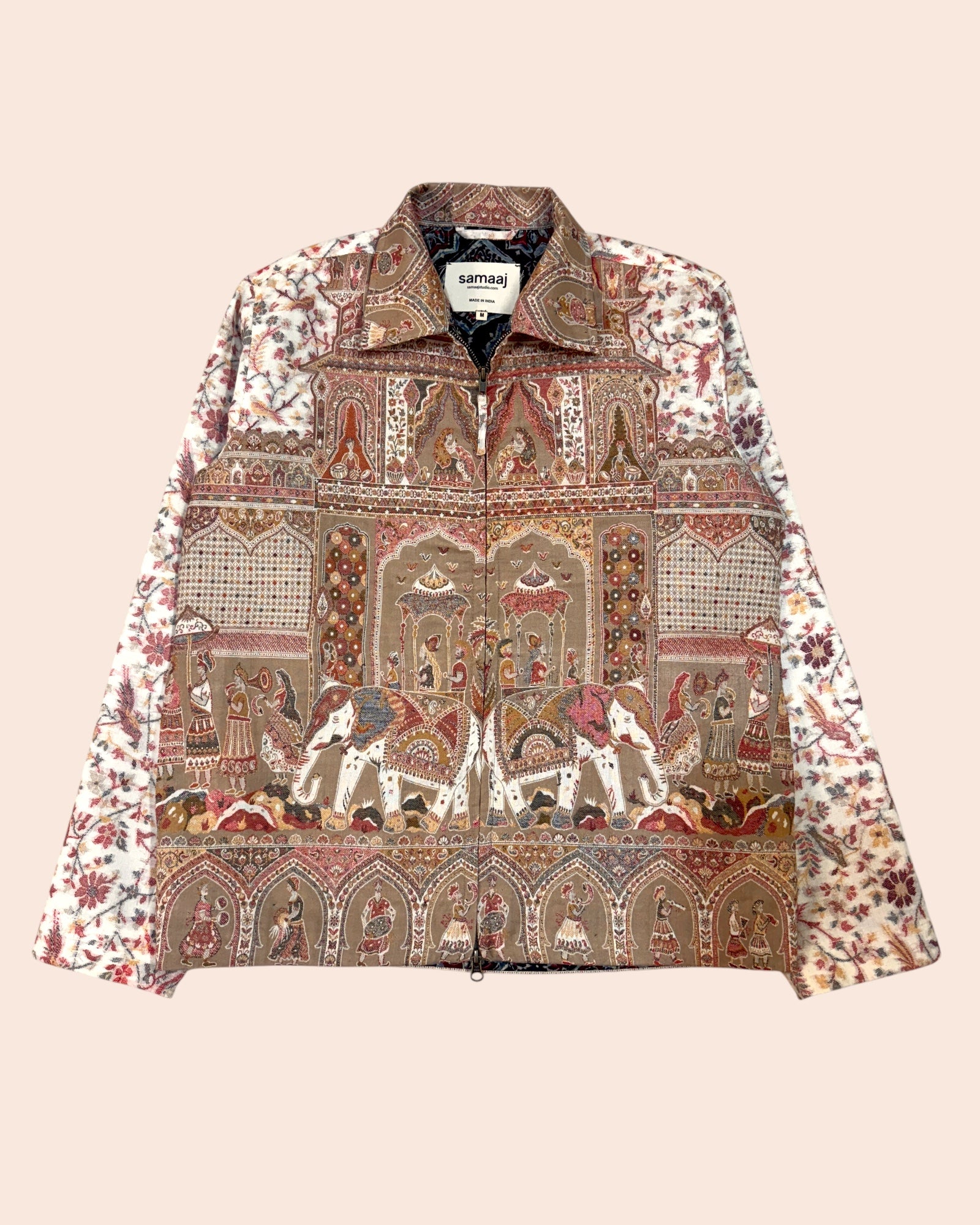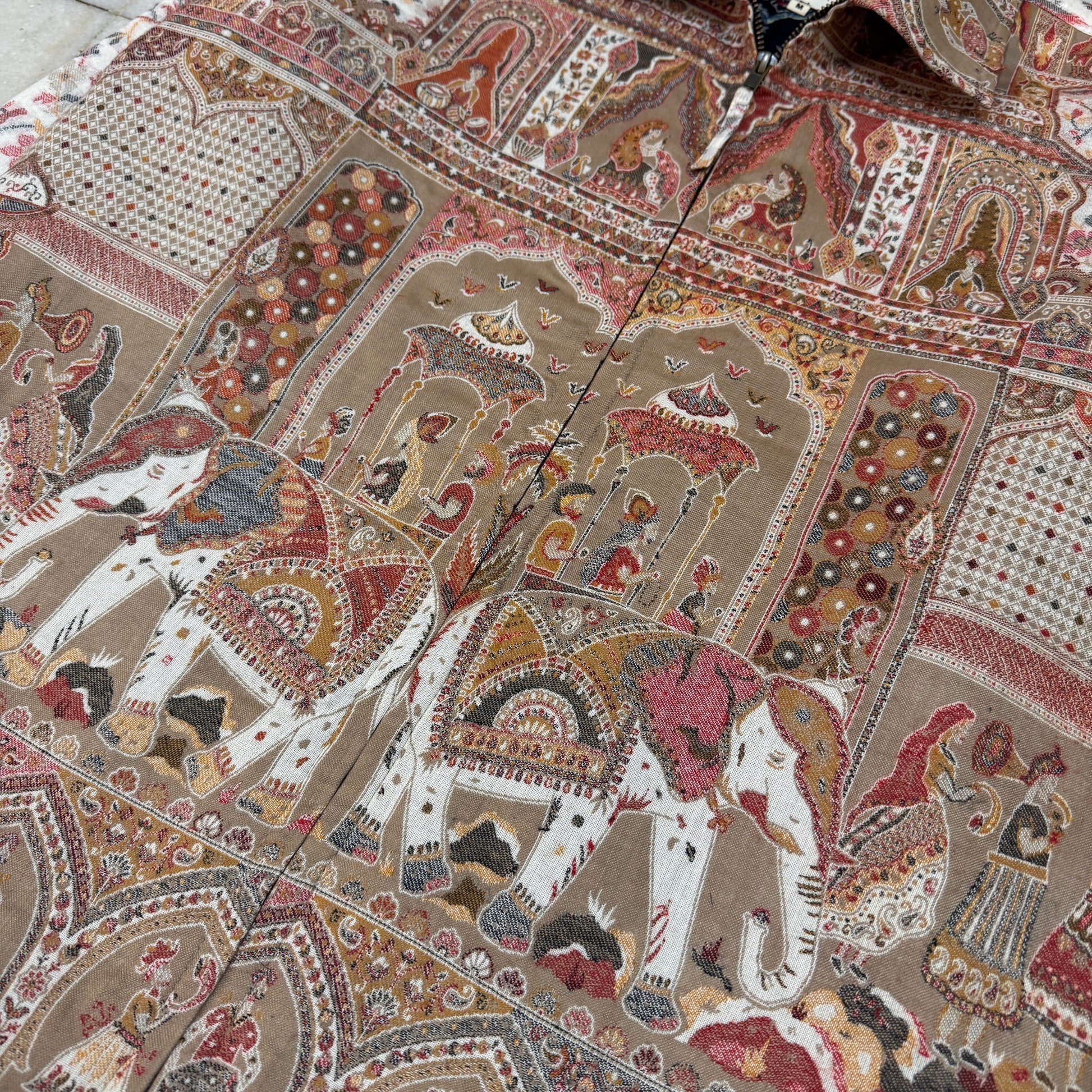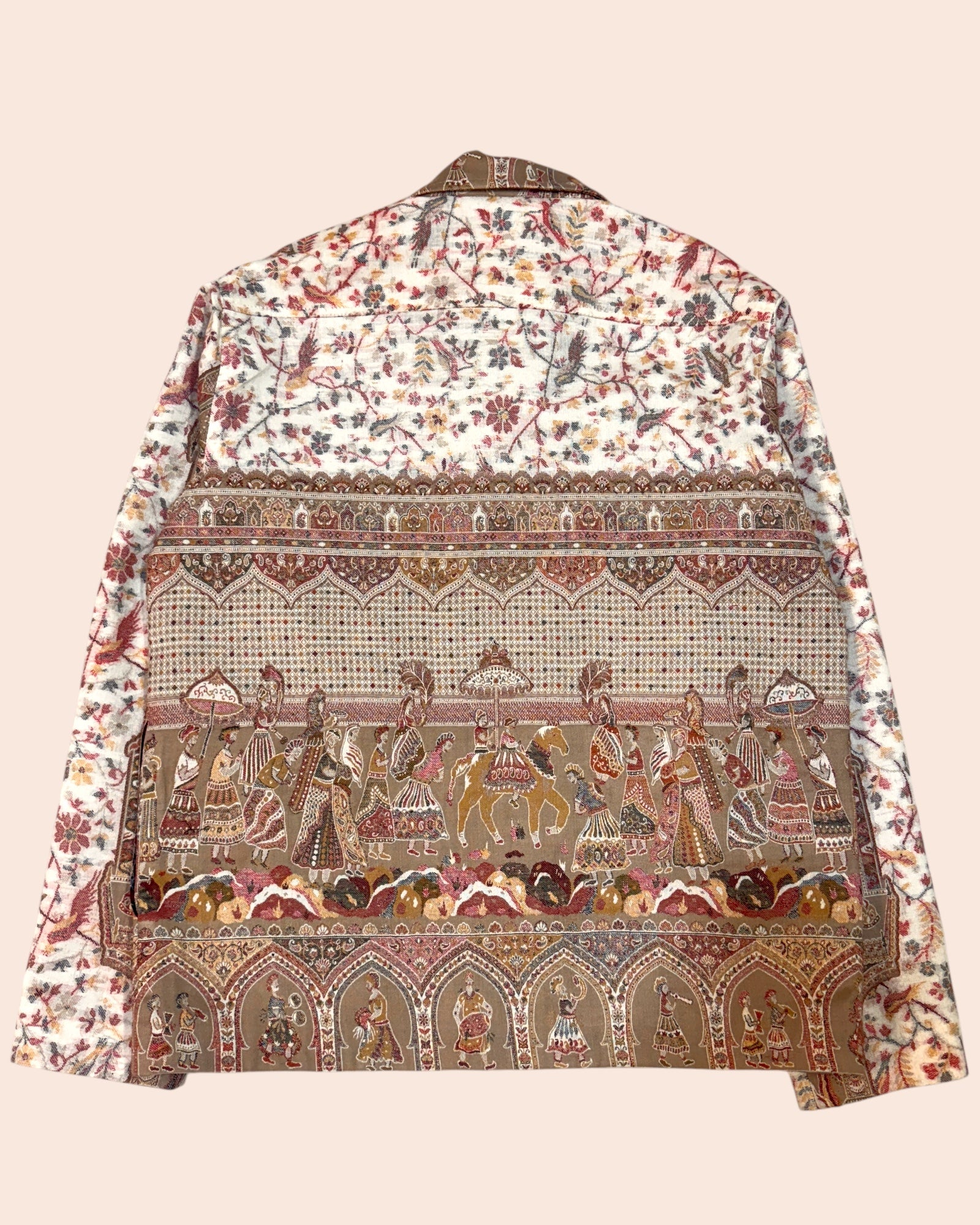 Pashmina hand woven jacket made from handwoven vintage pashmina wool shawl. Woven with the kani technique native to Kashmir region of India.