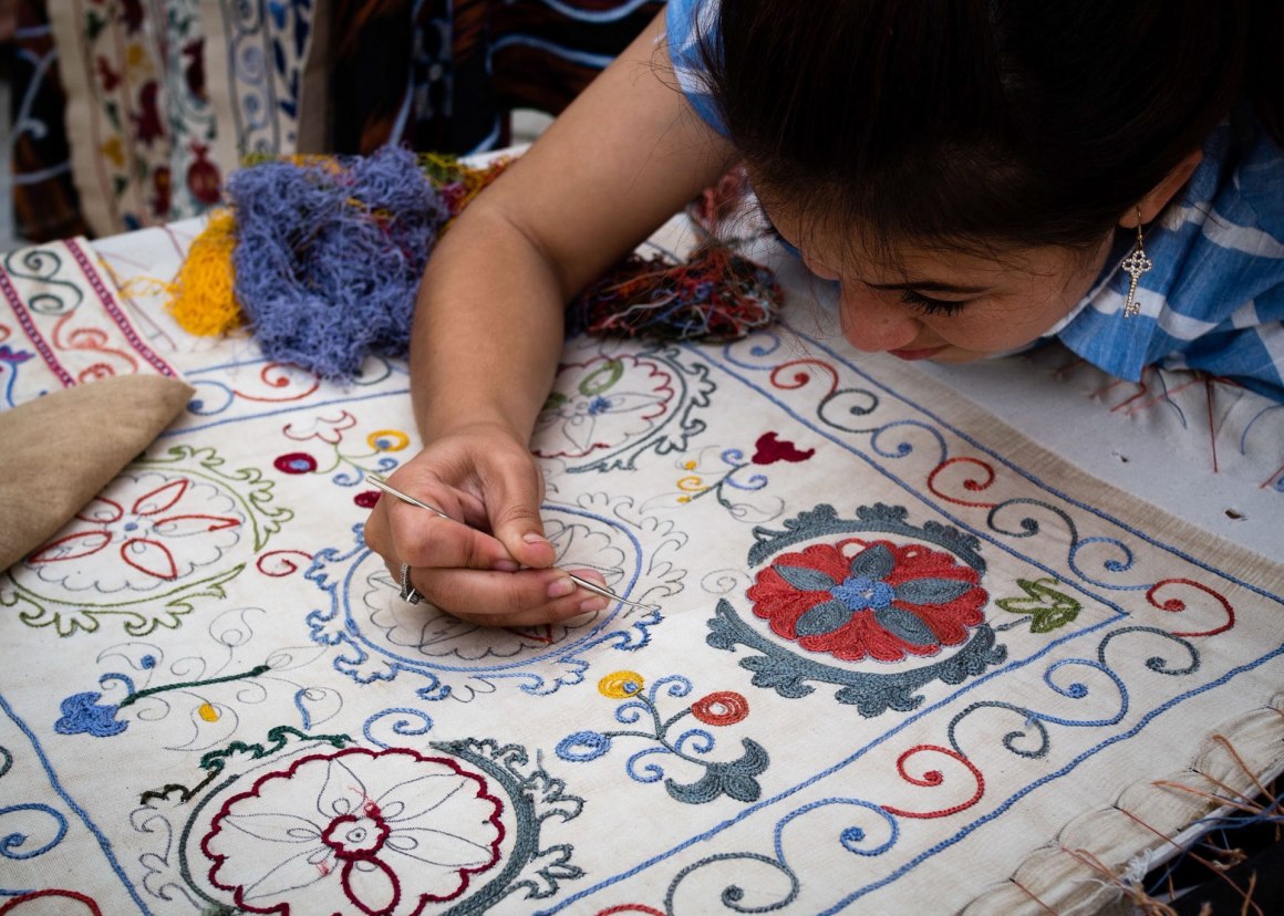 Suzani hand embroidered shirt made from handwoven cotton and hand embroidered with Suzani technique native to Uzbekistan.