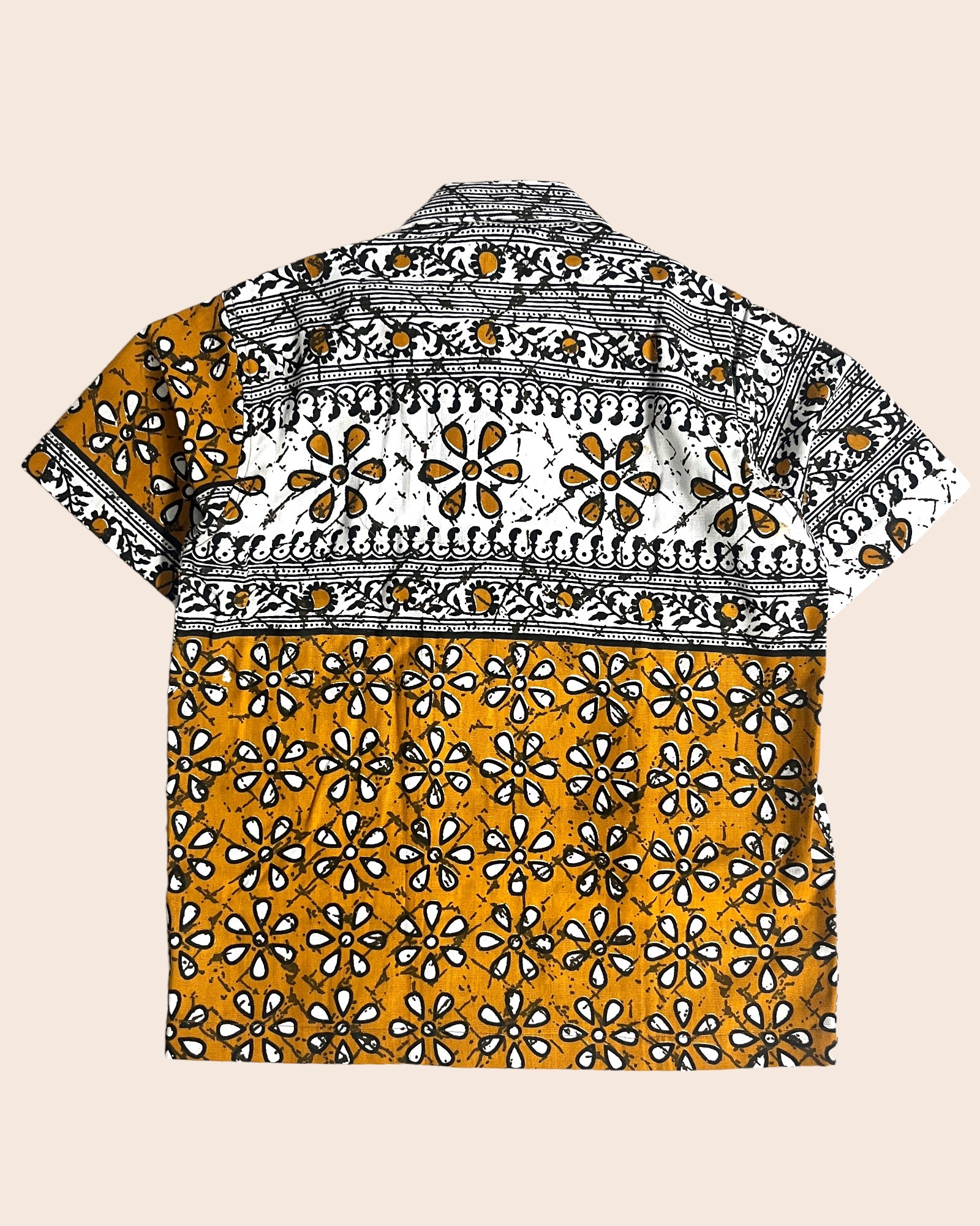 Vintage white and yellow shirt made out of 1990s vintage deadstock bedsheet. This bedsheet is handwoven by the weavers of Bhagalpur, Bihar.
